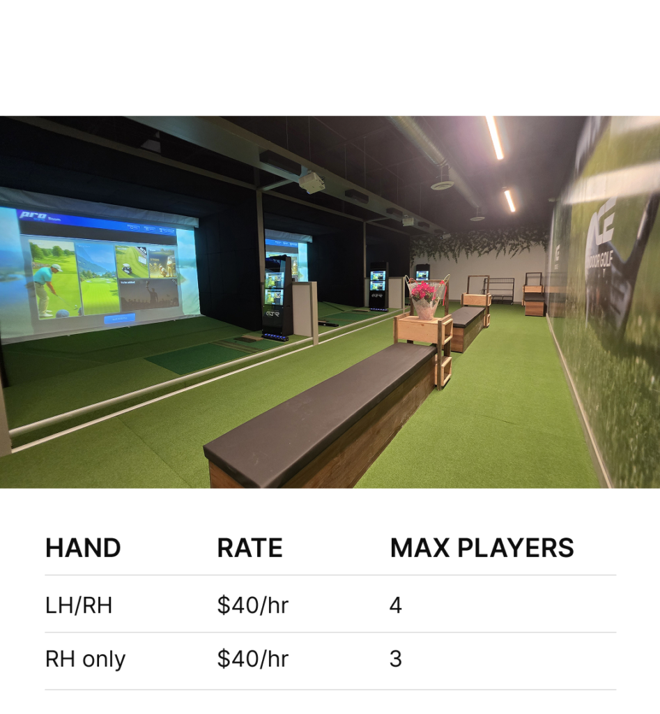 Pembroke 1200 Pembroke ST West, Unit 193, Pembroke K8A 7T1 ON (West End Plaza)info@aceindoorgolf.ca+1 (437)-566-0505 Book Now Bay Information Floor Plan
